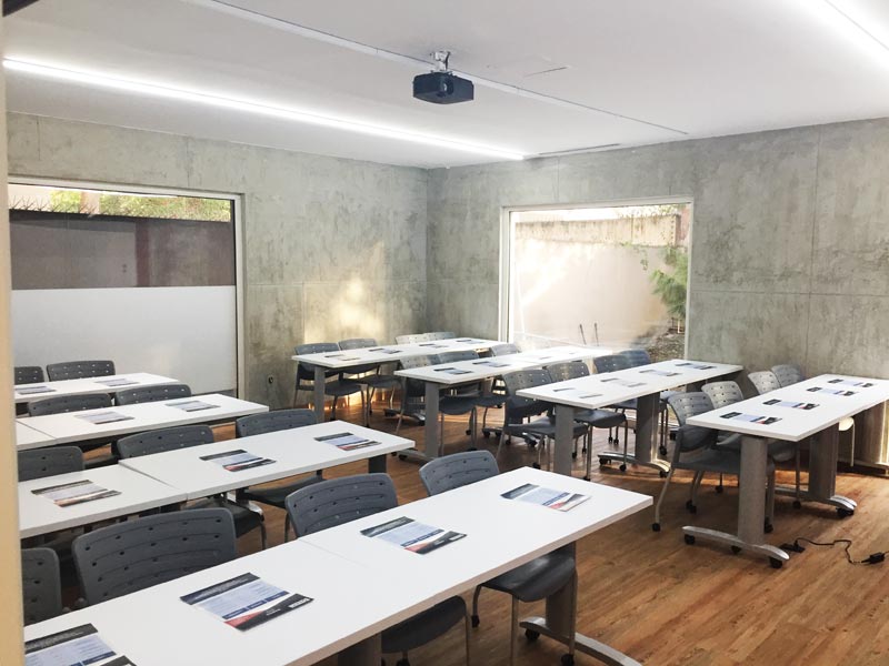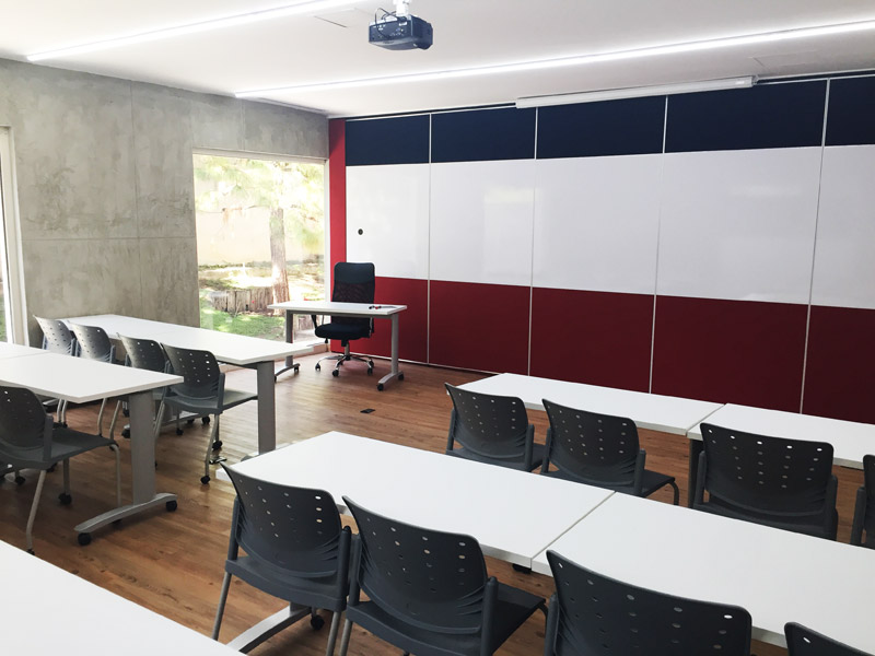 La sala 1 y 2 tiene la capacidad ampliarse y crear una sola aula para un máximo de